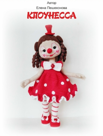 При использовании данной пряжи и крючка, при плотном вязании рост клоунессы 27см.